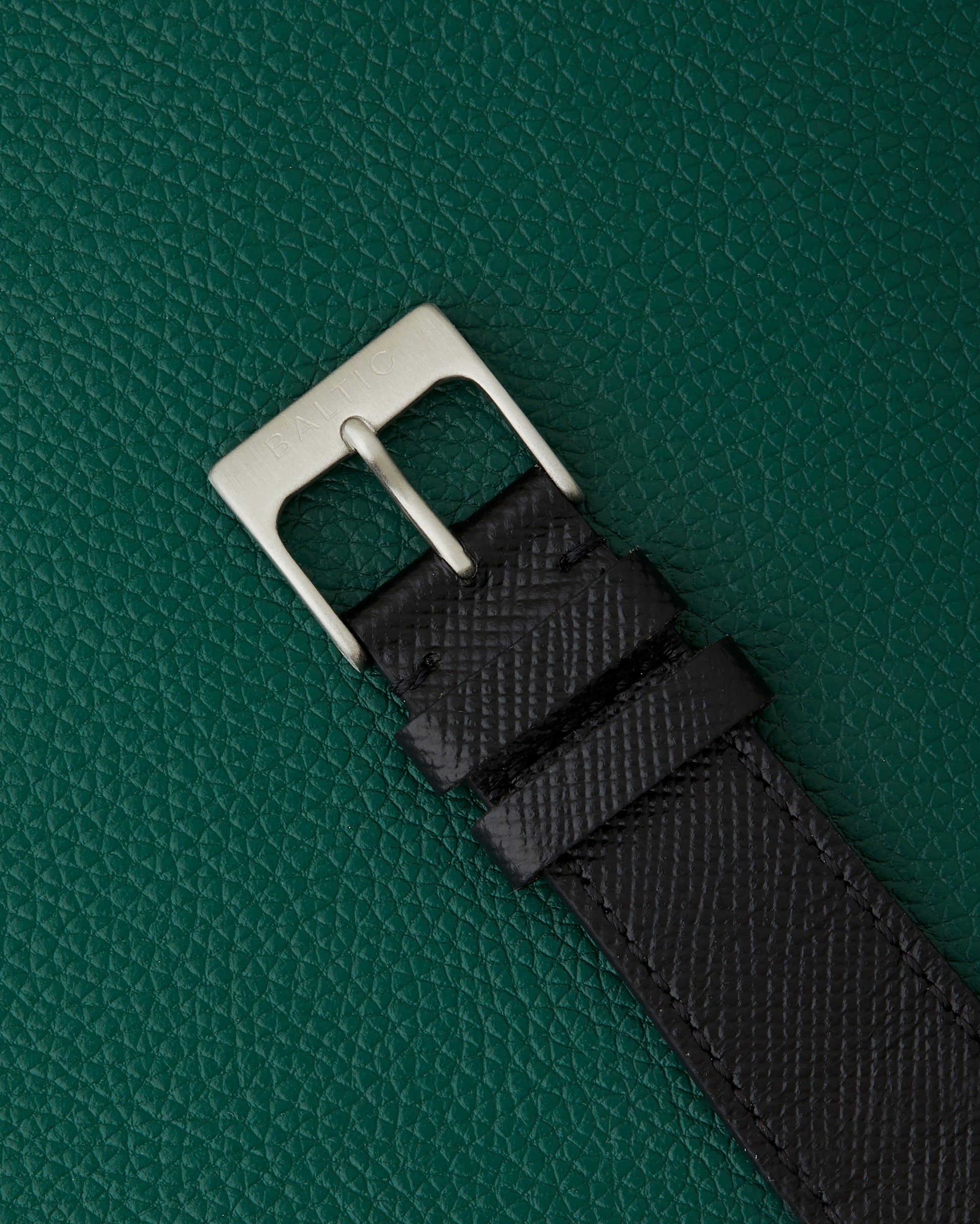 Comes on a black Baltic signed strap and Baltic stainless steel buckle.