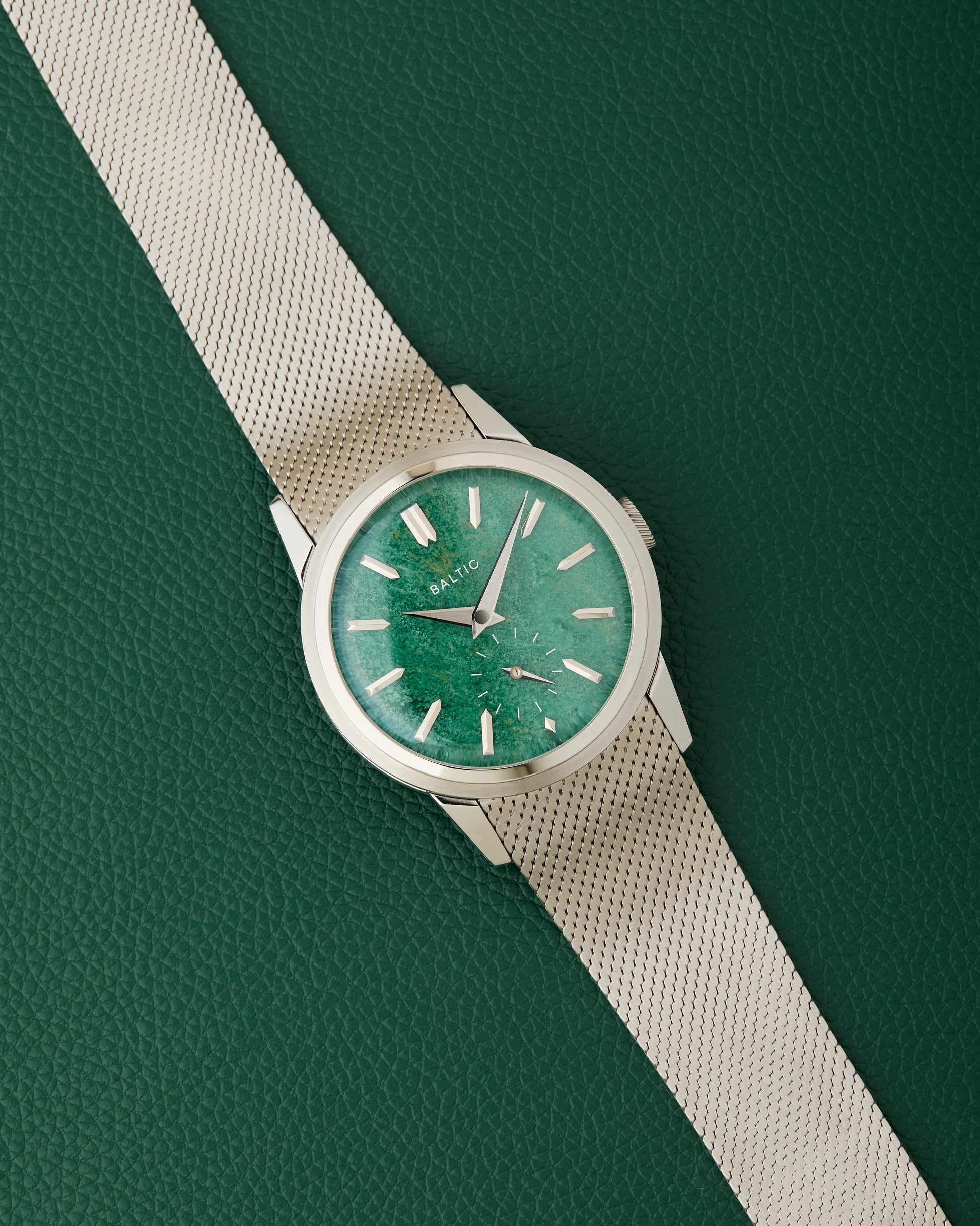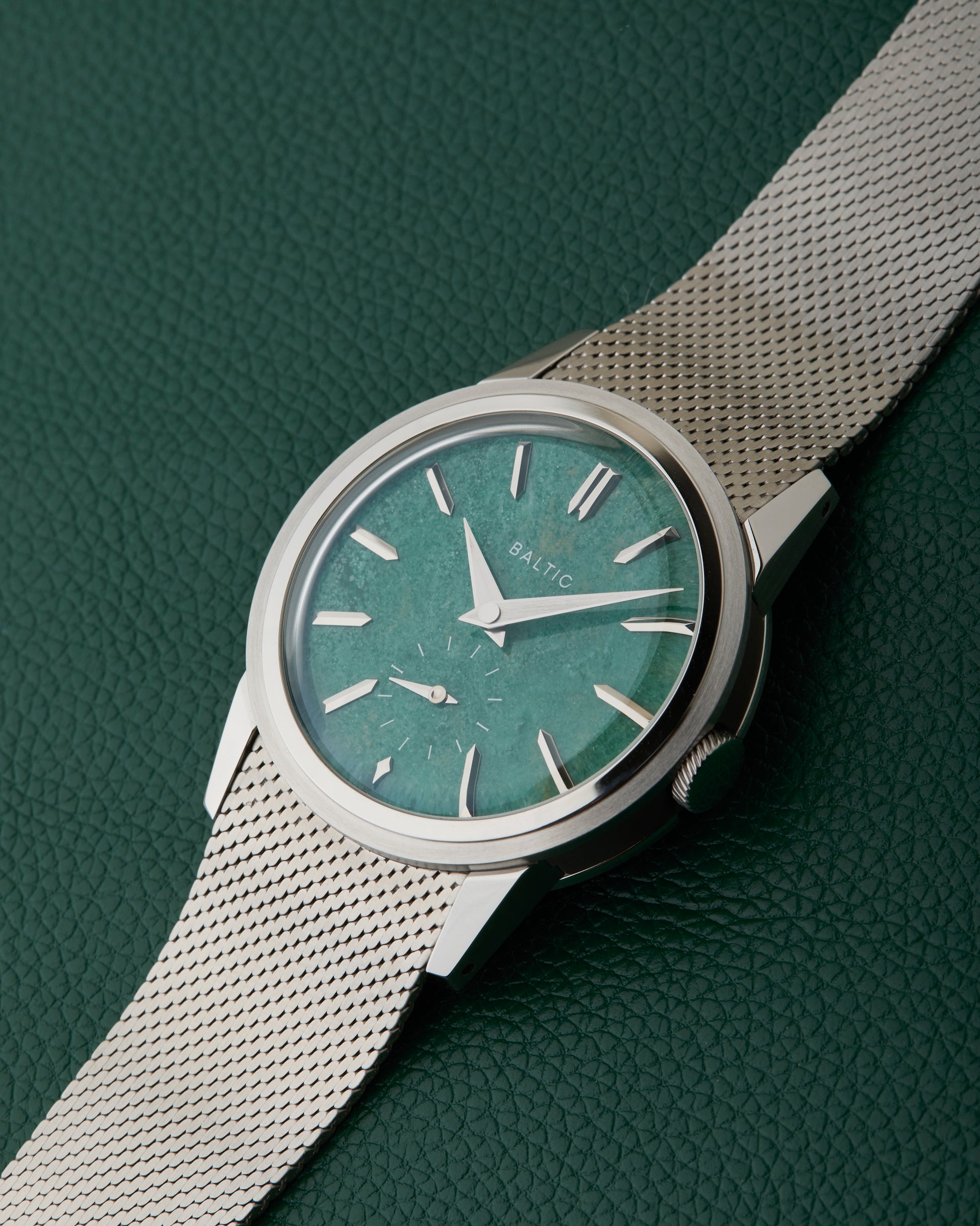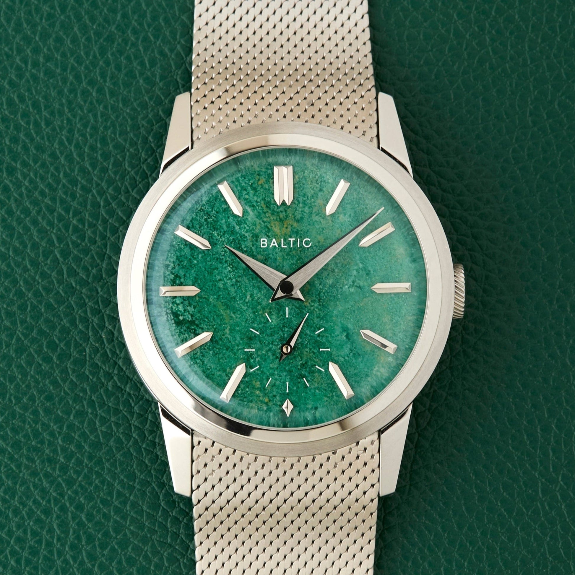 Comes fitted on its Baltic stainless steel mesh bracelet with signed clasp. We also have an additional Baltic leather strap with Baltic buckle.