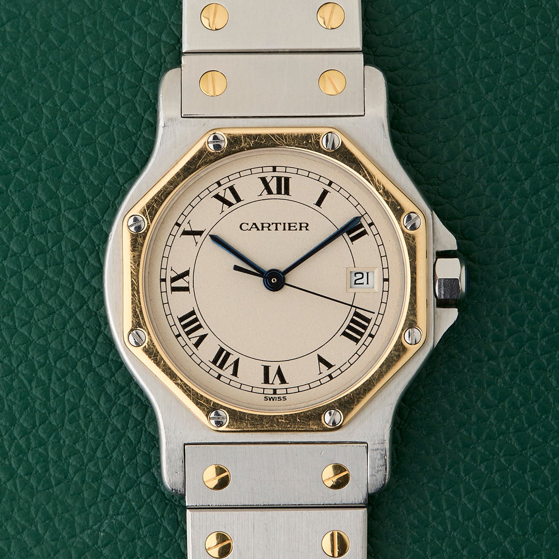Cartier Santos Octagon Ref.187902 Two Toned 18k Yellow Gold Octagonal Bezel