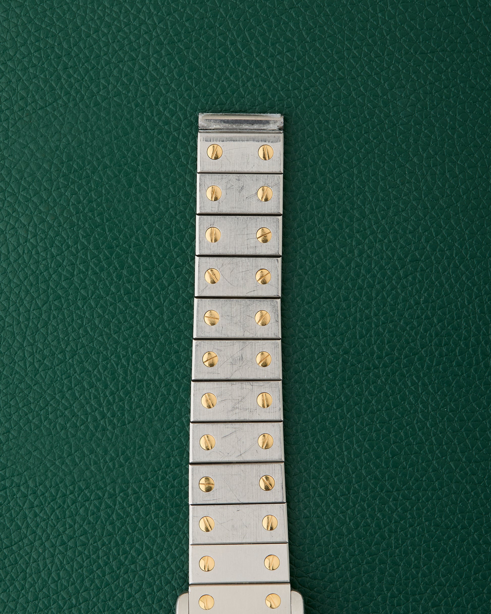 Strap material: Two‑tone steel and yellow gold bracelet with folding clasp