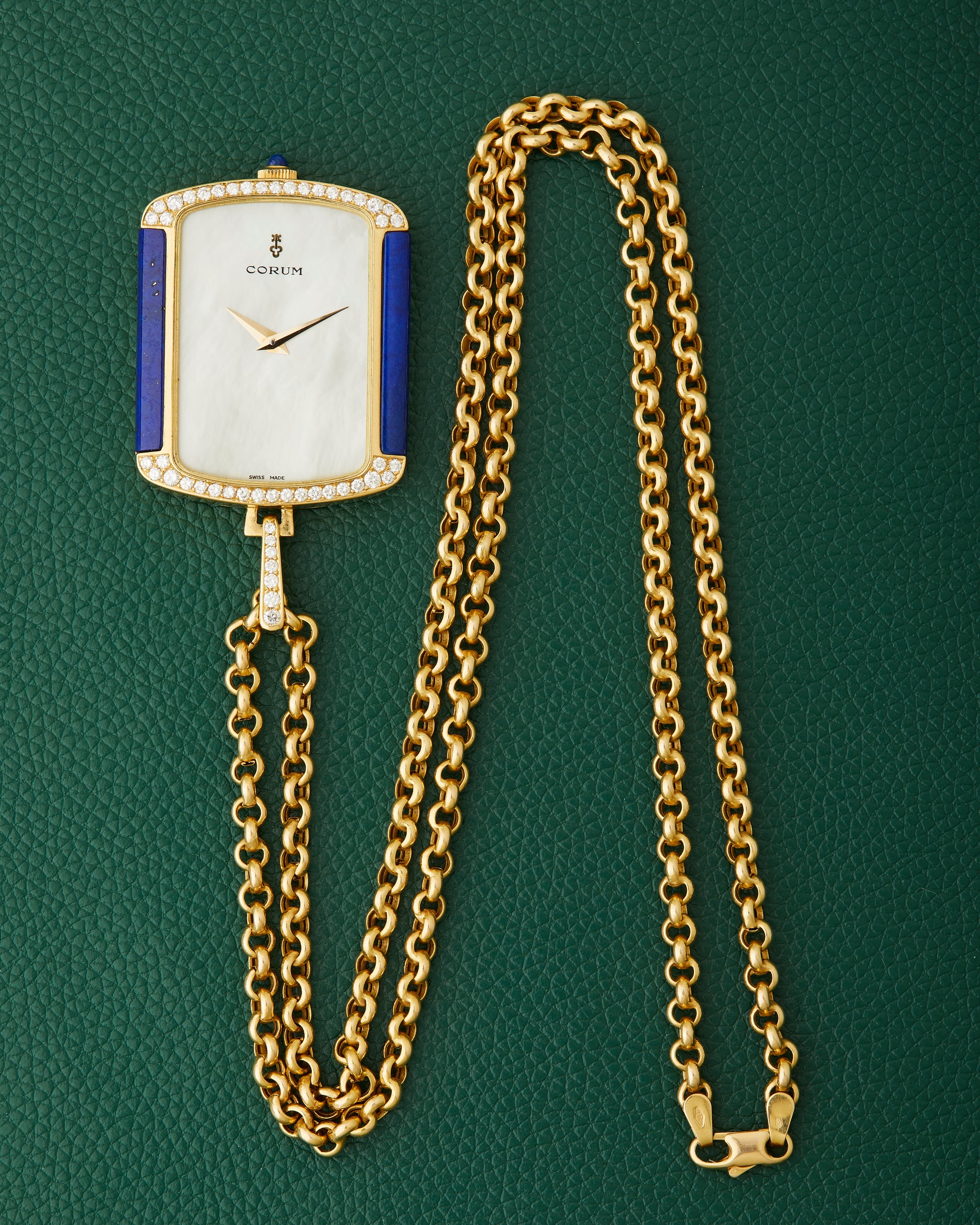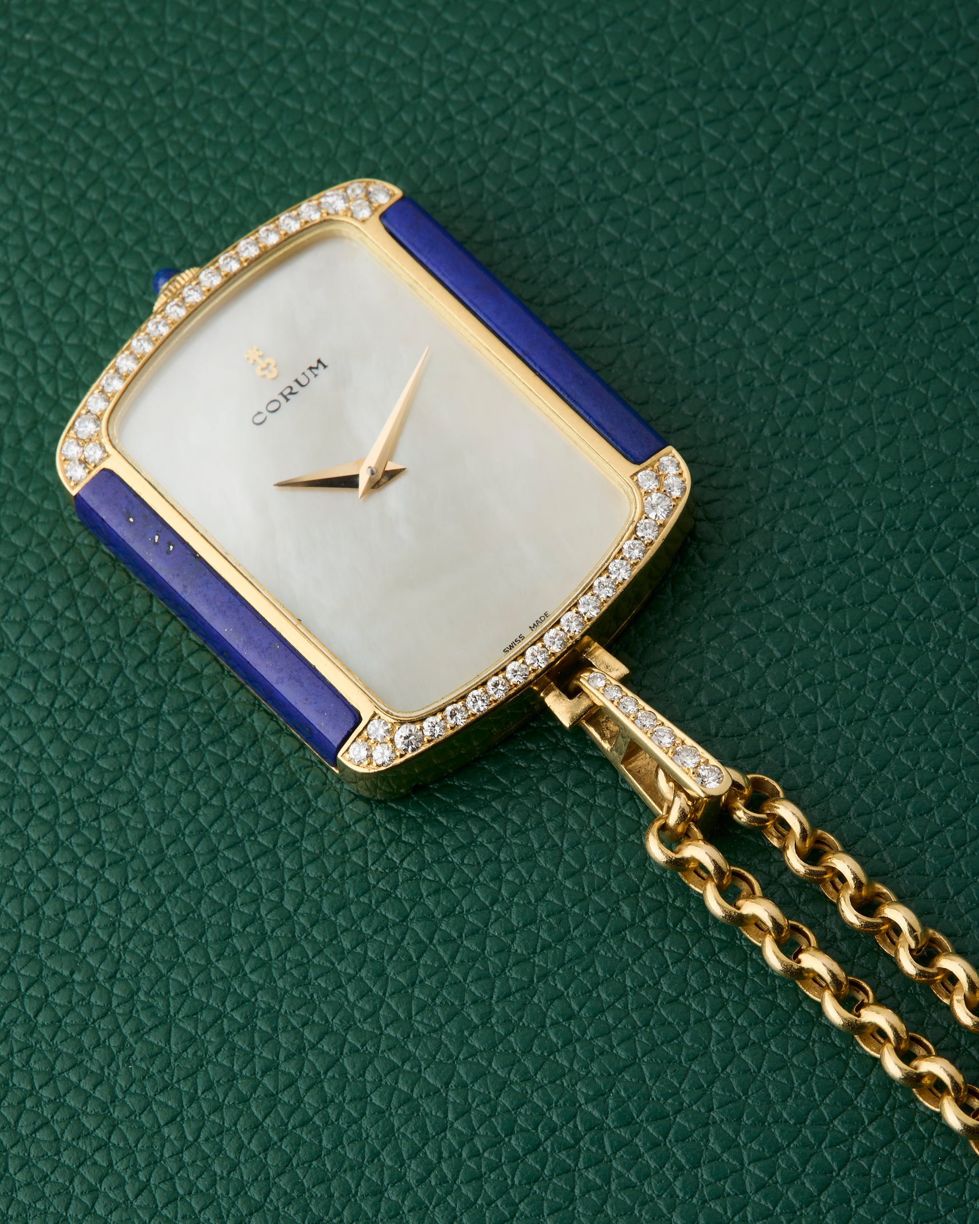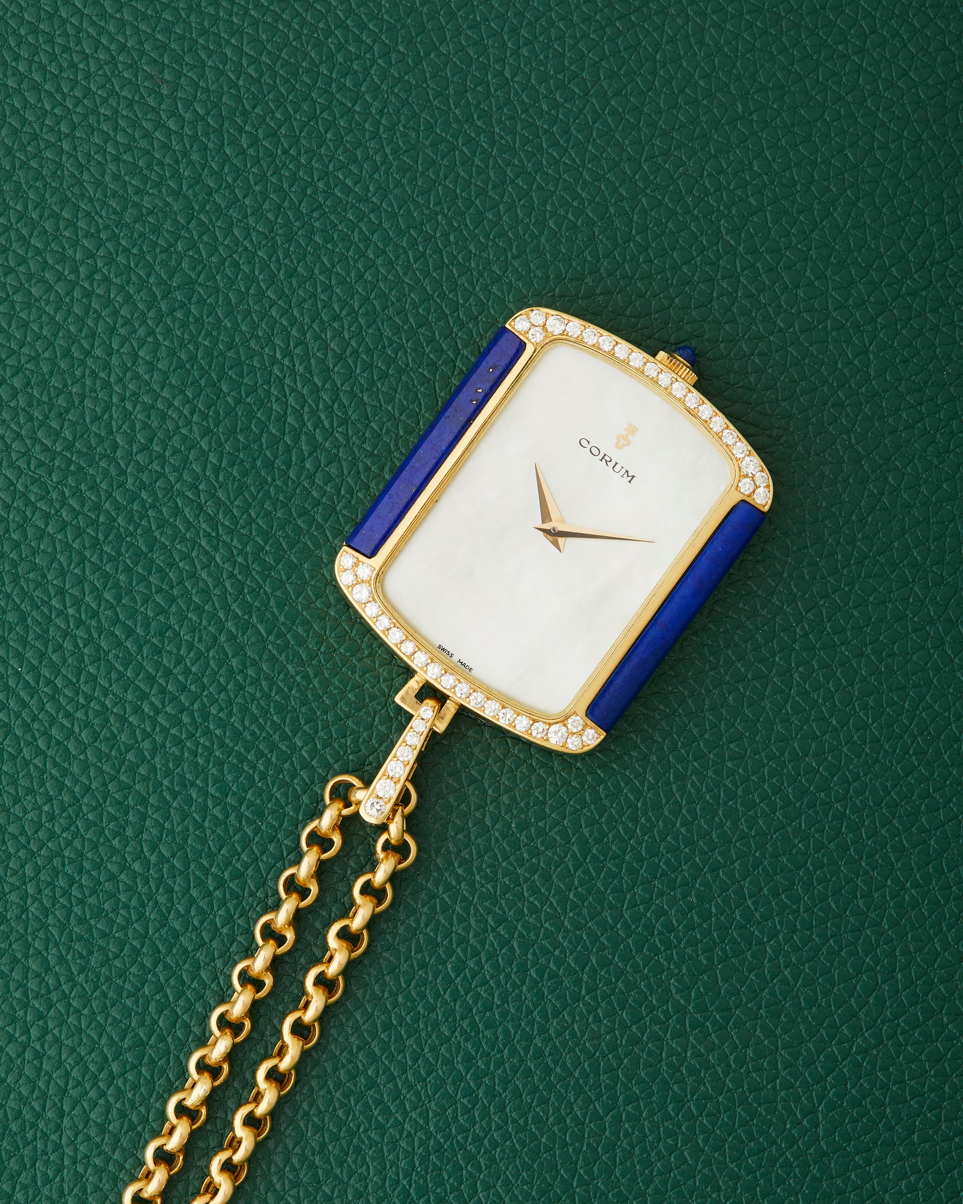Corum 18k Yellow Gold Ref. 176424 Lapis Lazuli Diamonds Mother of Pearl Dial Pendant Watch