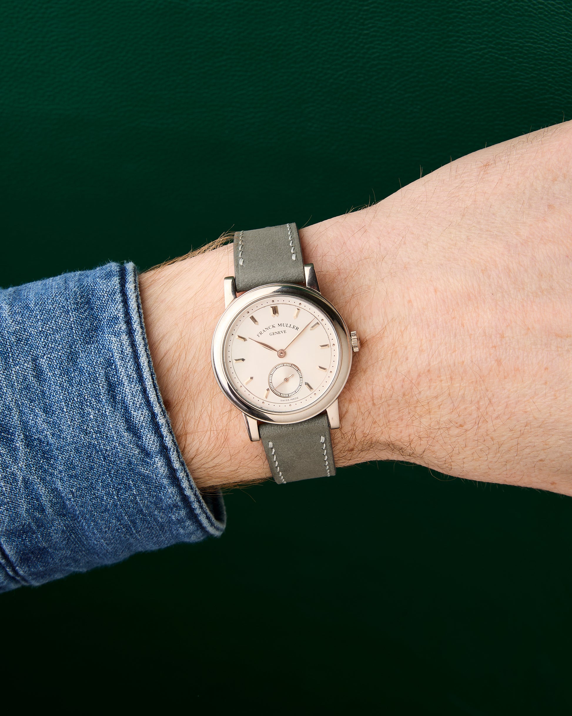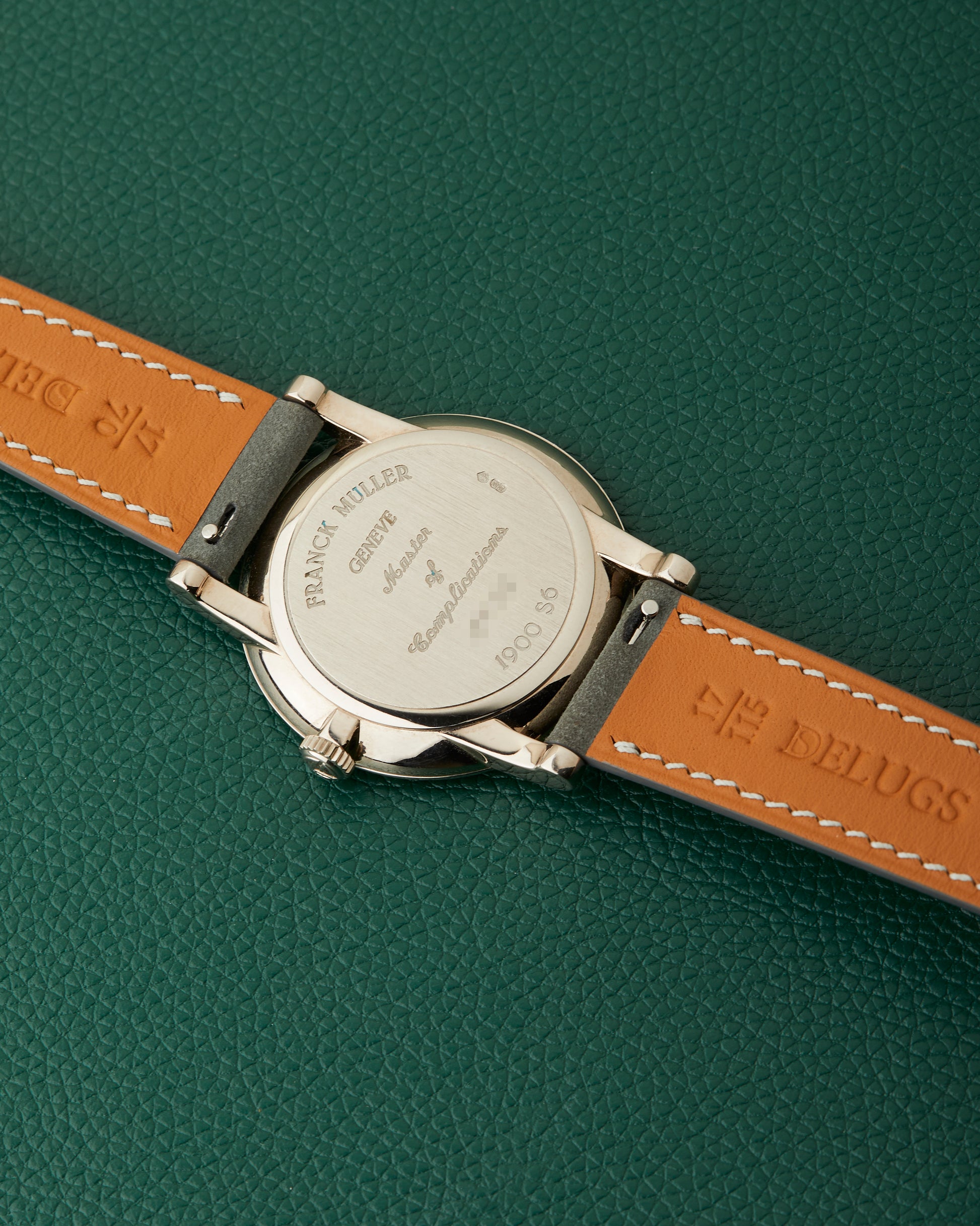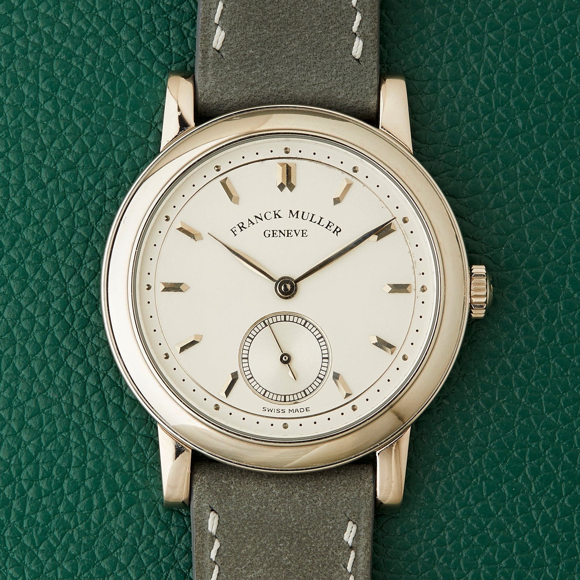 Comes fitted on a Delugs Light Grey Nubuck Slim strap and its original Franck Muller 18k white gold buckle.