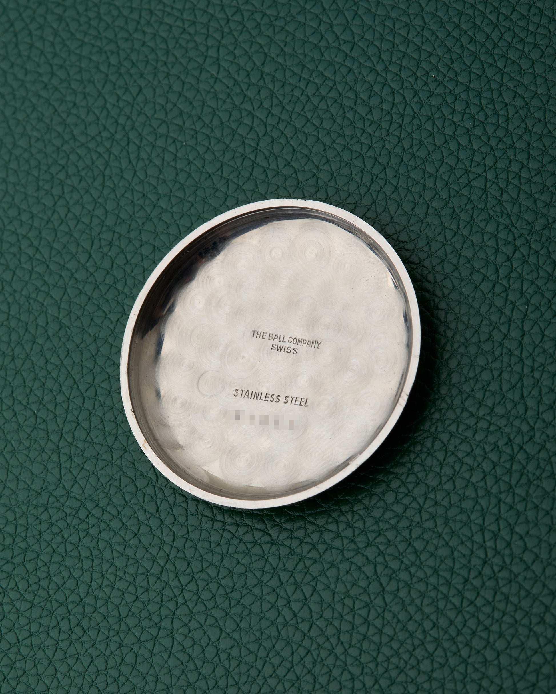 The 38mm stainless steel features highly attractive lugs. The inside caseback is signed "The Ball Company Swiss"