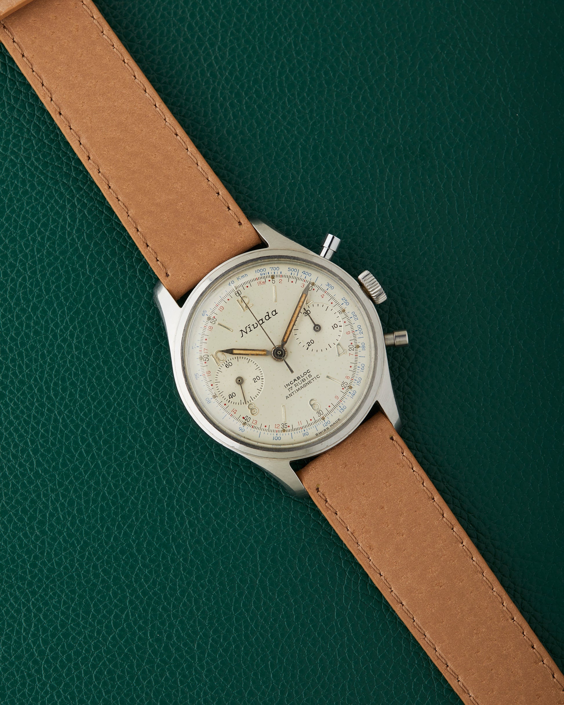 A watch from Nivada a historic Swiss brand that has seen a resurgence in interest thanks to some of their newer models taking strong inspiration from their back catalogue.