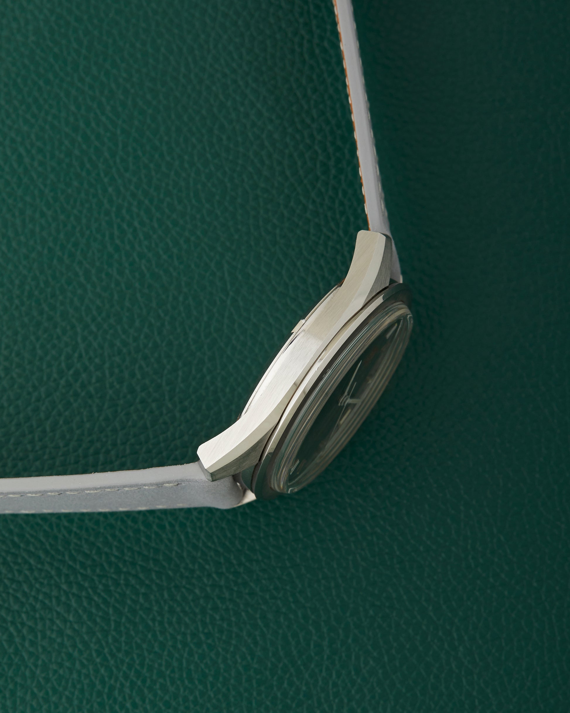 Its incredibly sharp 36.5mm stainless steel case exhibits clearly defined lugs and is fitted with an Omega signed crown.
