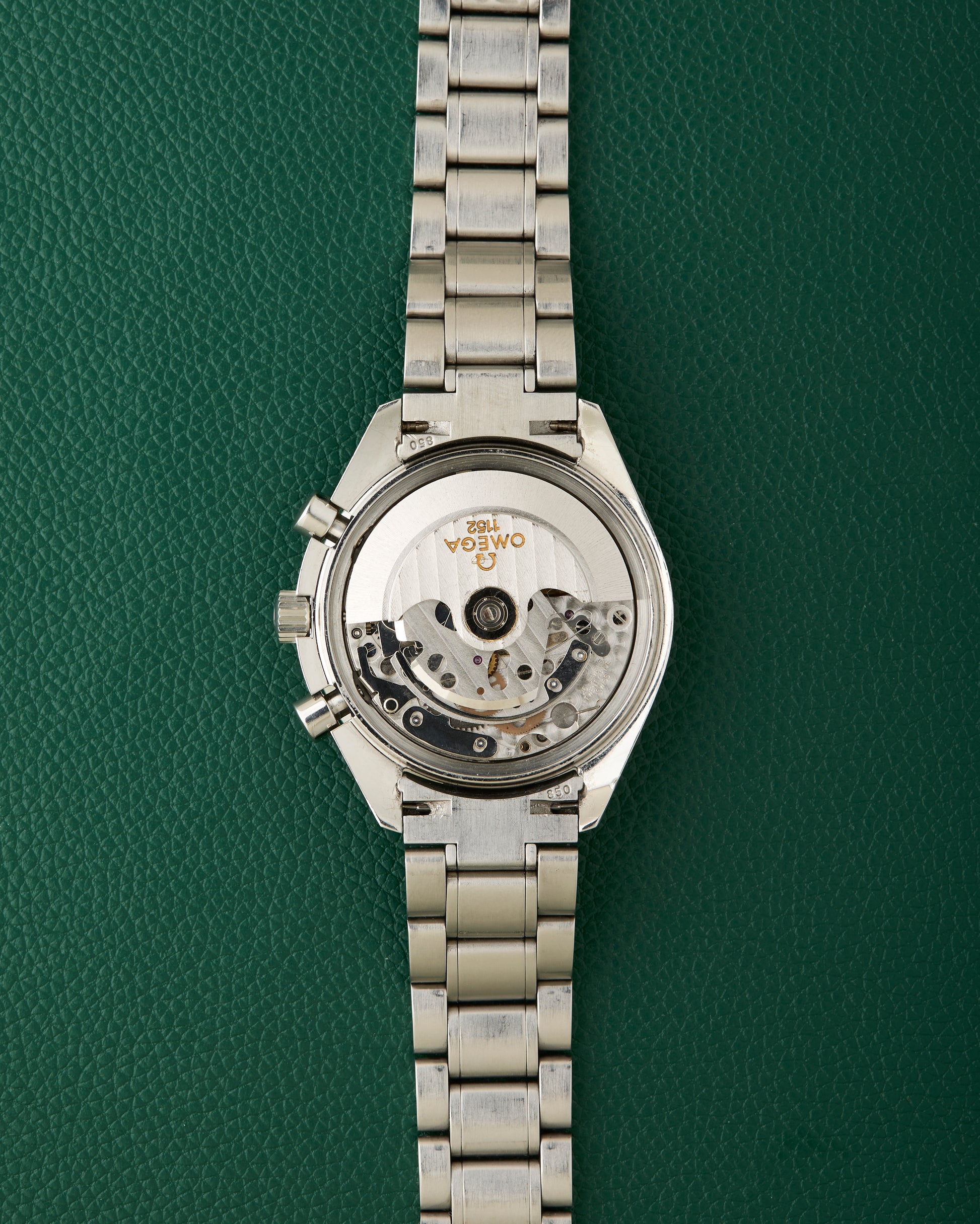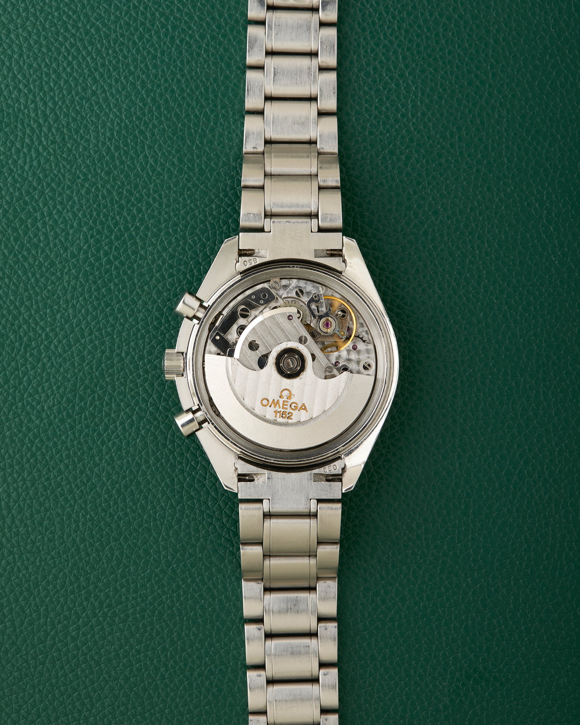 Inside beats the Omega calibre 1152 automatic chronograph movement.