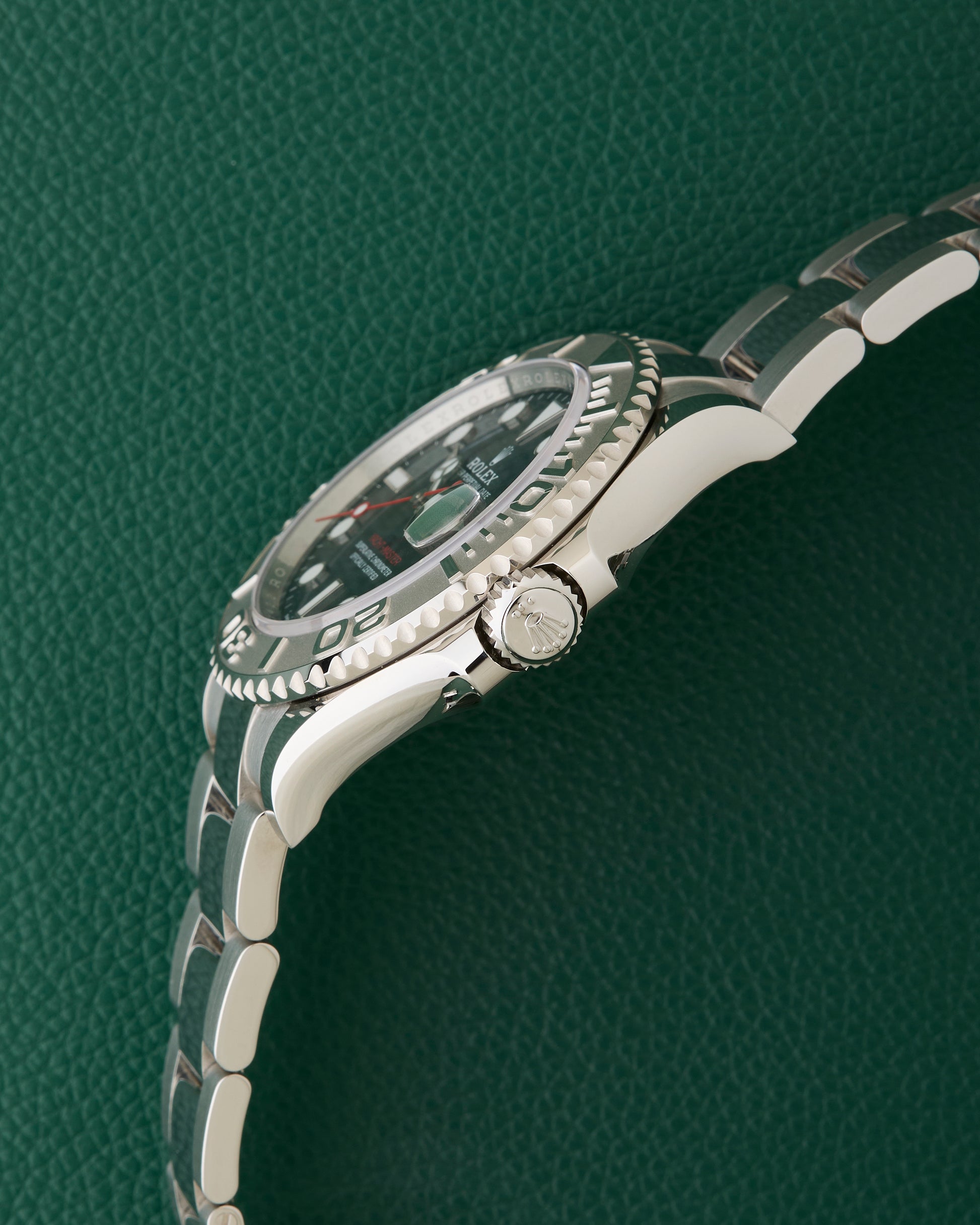 Being a full set, we have the Rolex Guarantee Card dated July 2025, Rolex Guarantee Manual Worldwide Service, Yacht-Master booklet, Rolex Green box, Outer Rolex Green cardboard box.