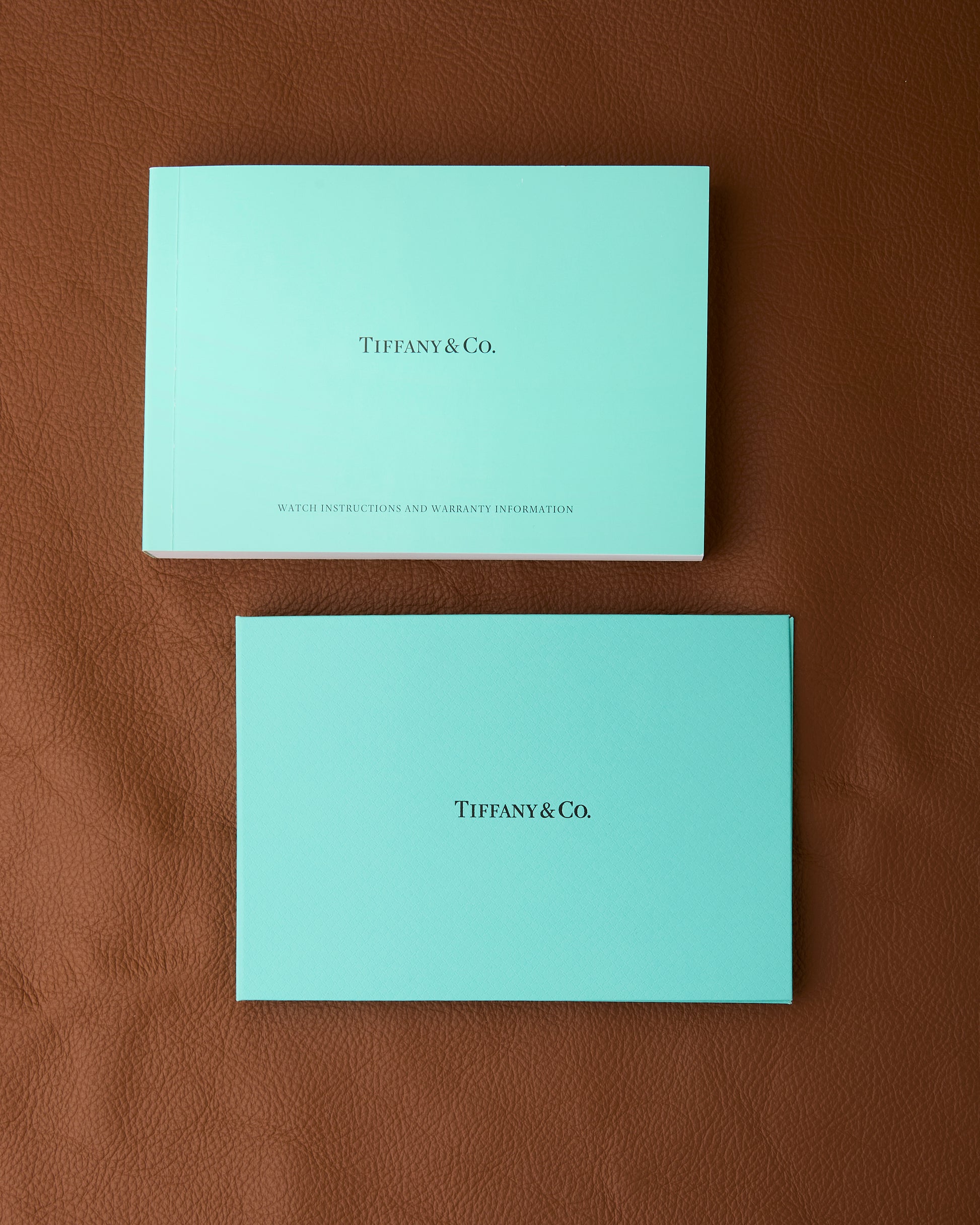 We have the Tiffany & Co. watch instructions and warranty information booklet, Tiffany & Co. presentation box, and light blue cardboard Tiffany & Co. box.