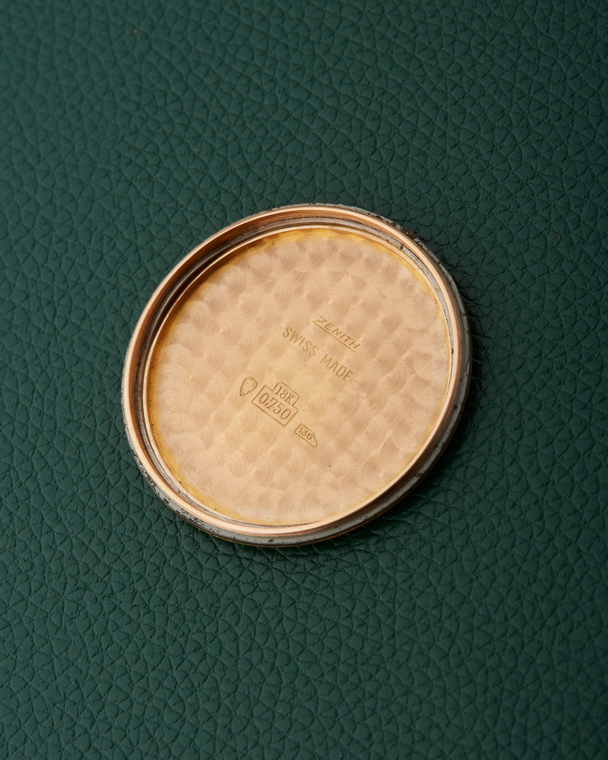 The inside caseback has the "136" hammerhead representing C.R. Spillmann SA the notorious Swiss case makers from La Chaux de Fonds. They made cases for many Swiss watch manufacturers and also famously the original Rolex Oyster cases.