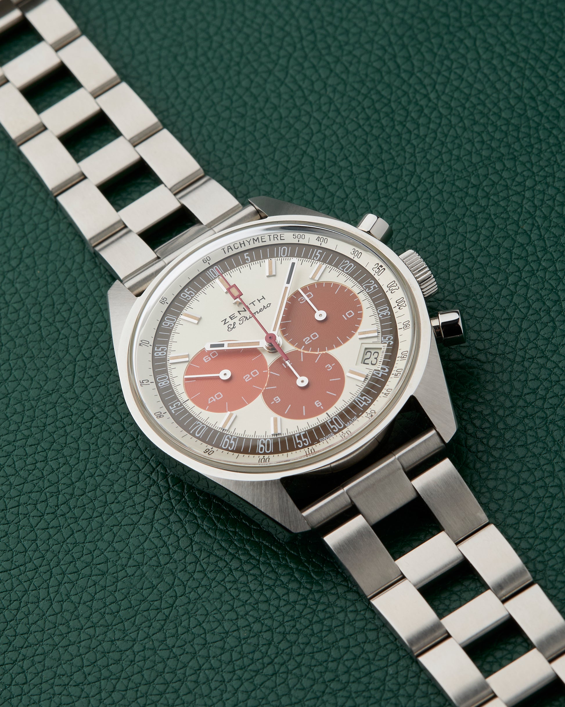 Inside beats the legendary Zenith El Primero calibre 400 automatic chronograph.