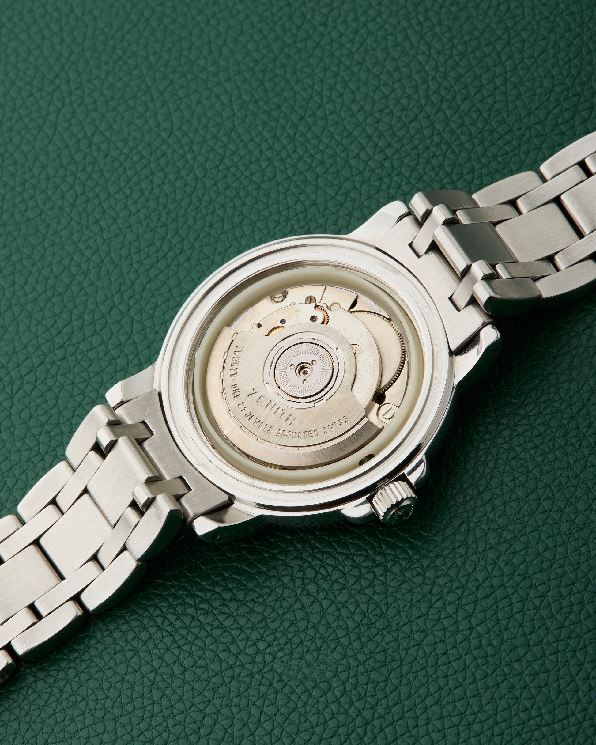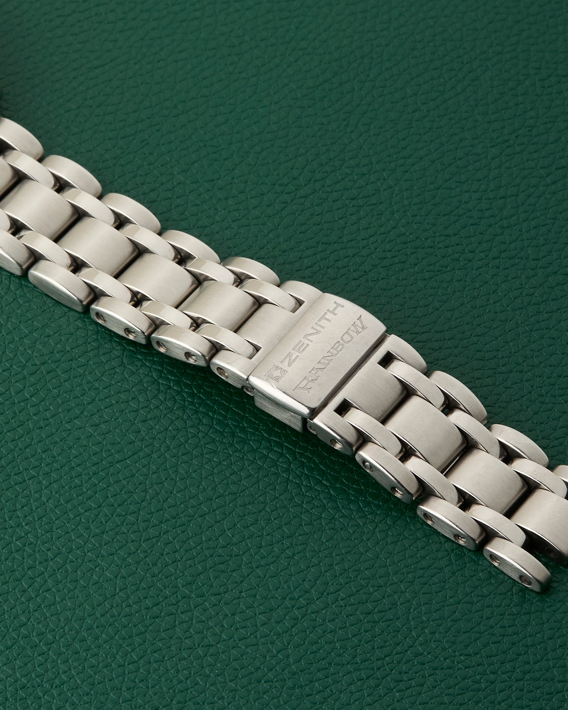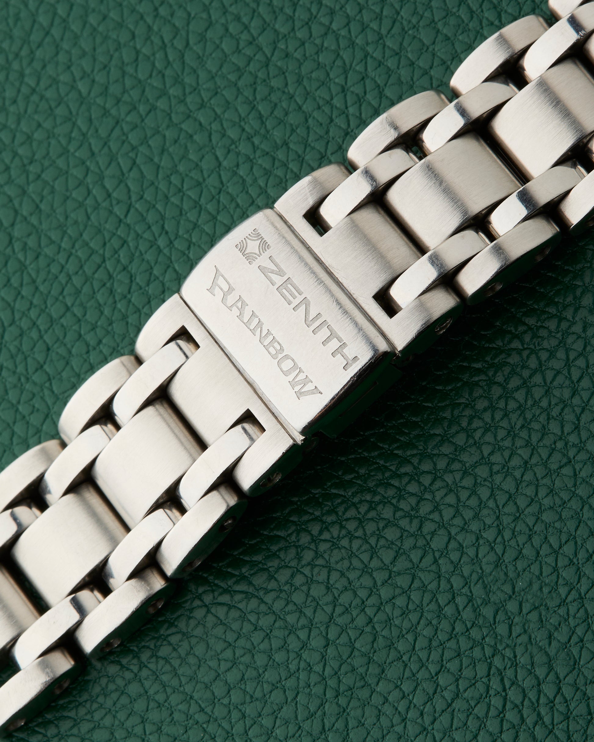 Comes fitted on its Zenith stainless steel bracelet with Zenith Rainbow signed clasp.