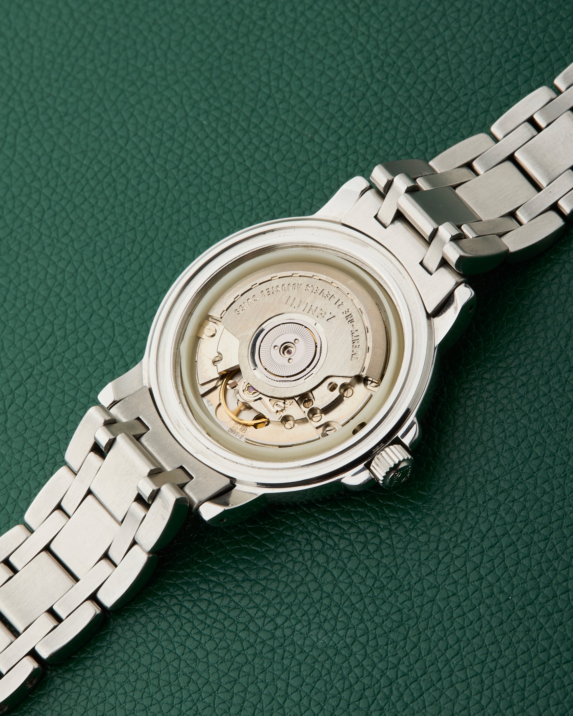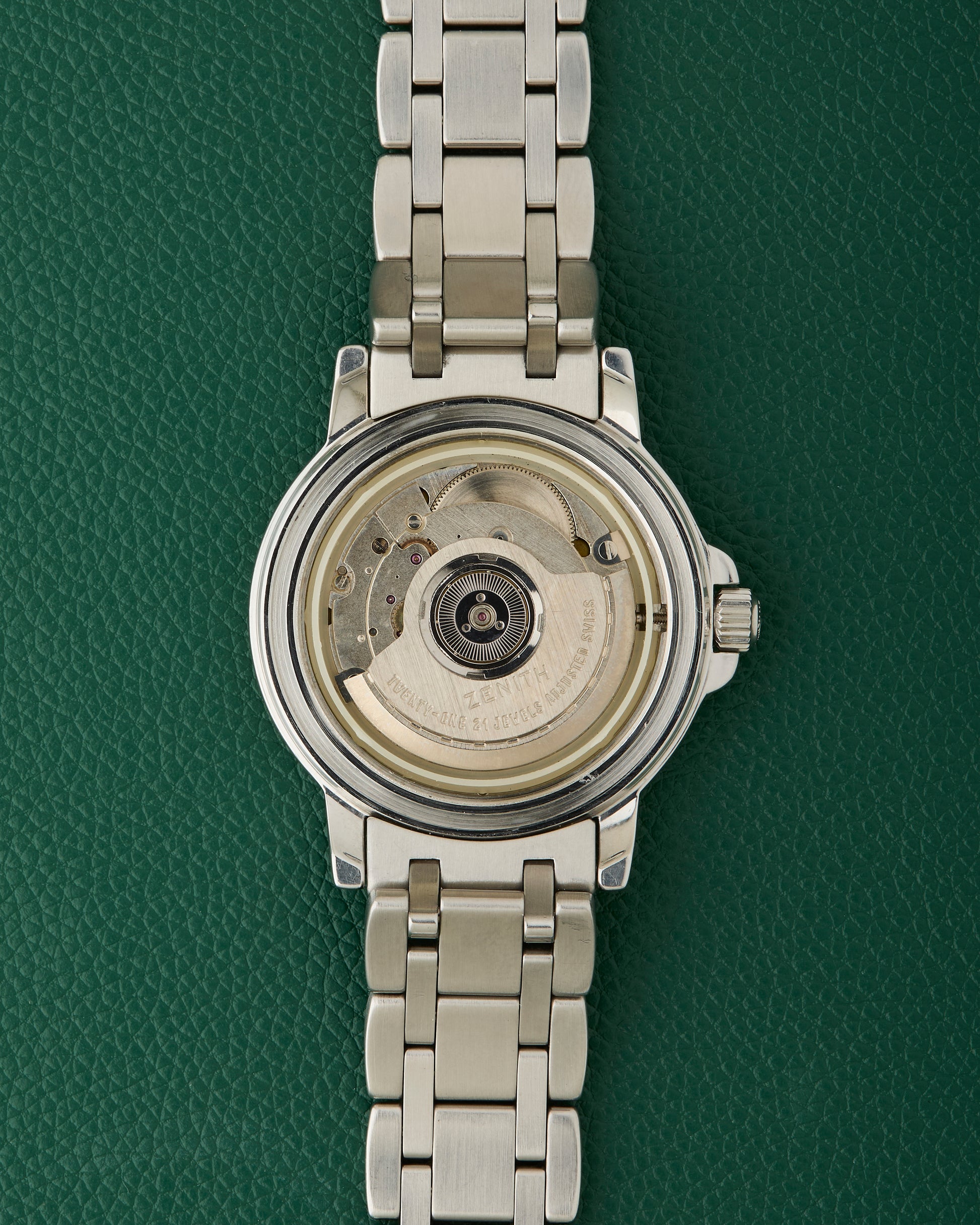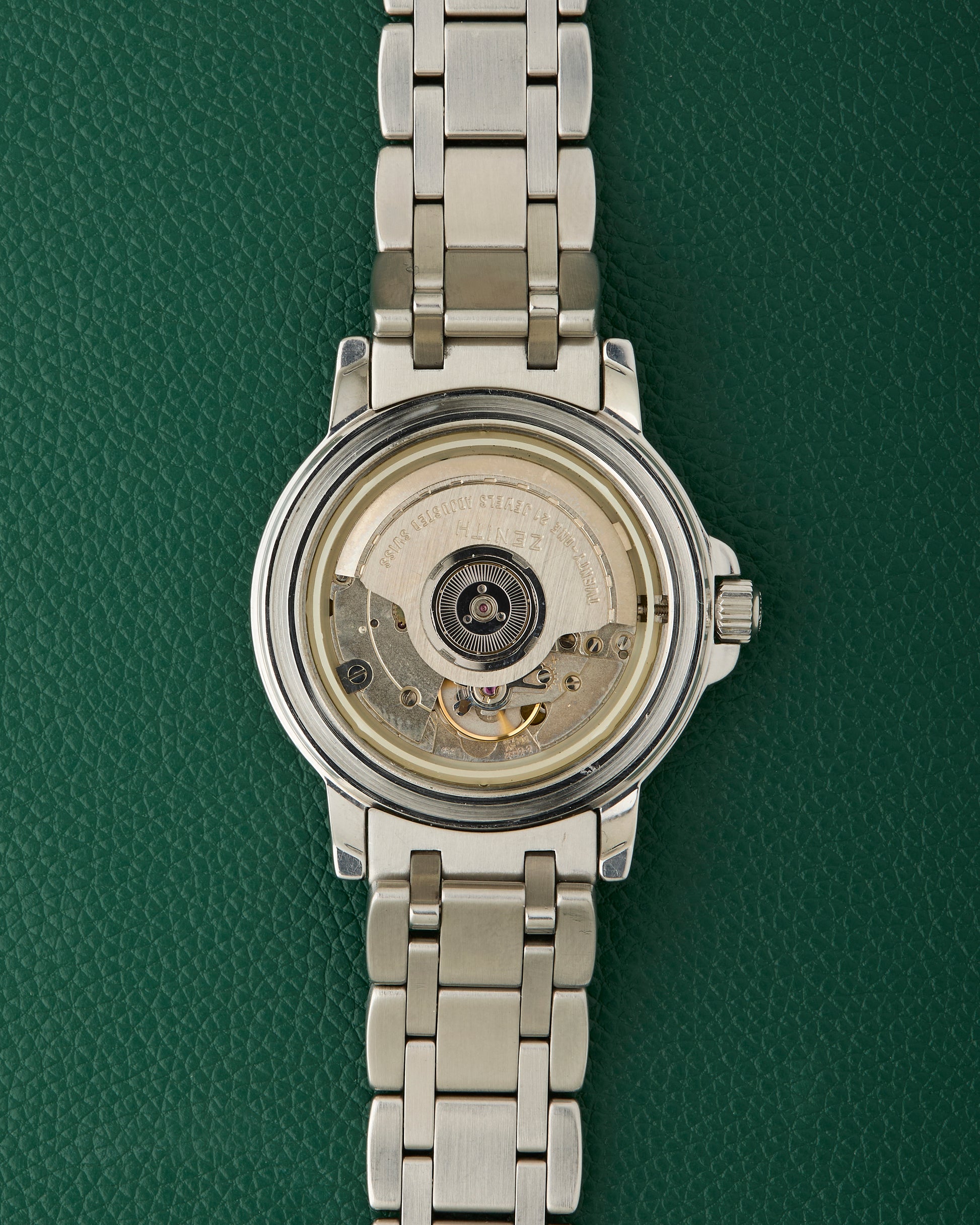 Comes fitted on its Zenith stainless steel bracelet with Zenith Rainbow signed clasp.