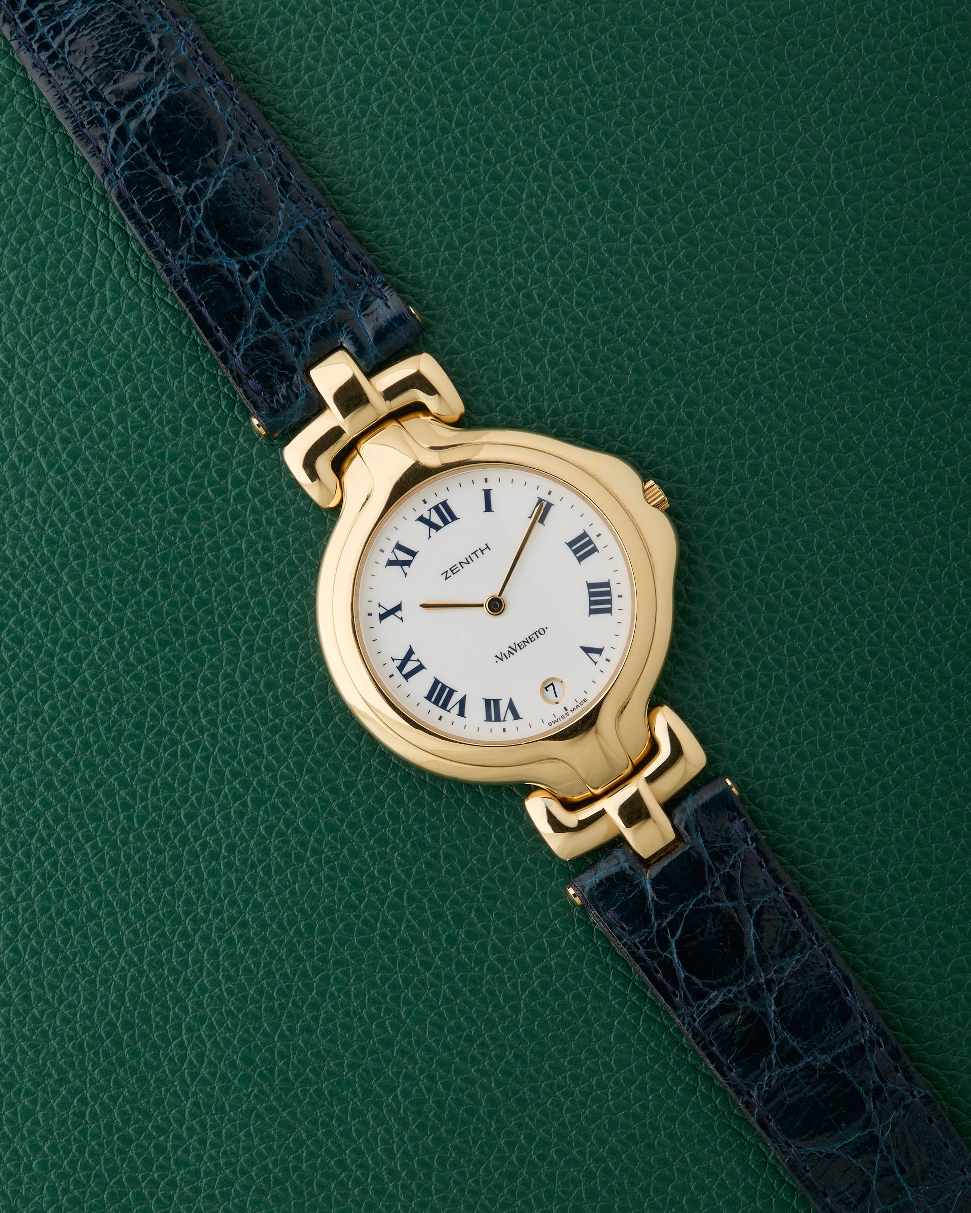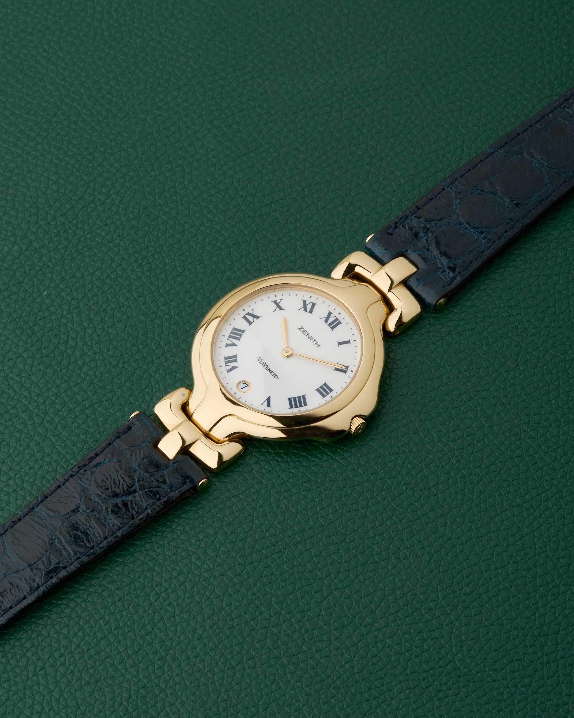 This Zenith ViaVeneto with the reference 27-0220.115 features a gorgeous white dial with Roman numerals.