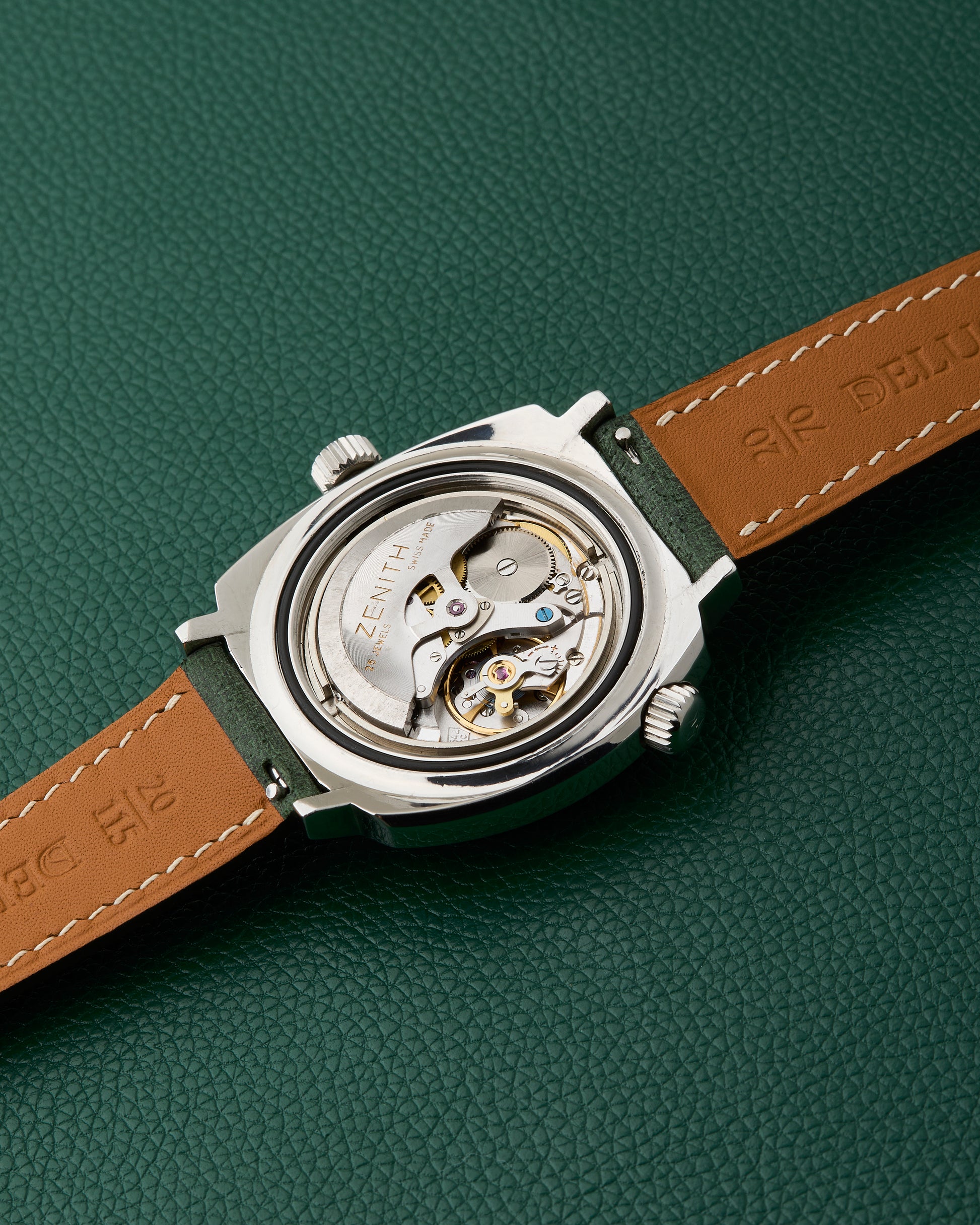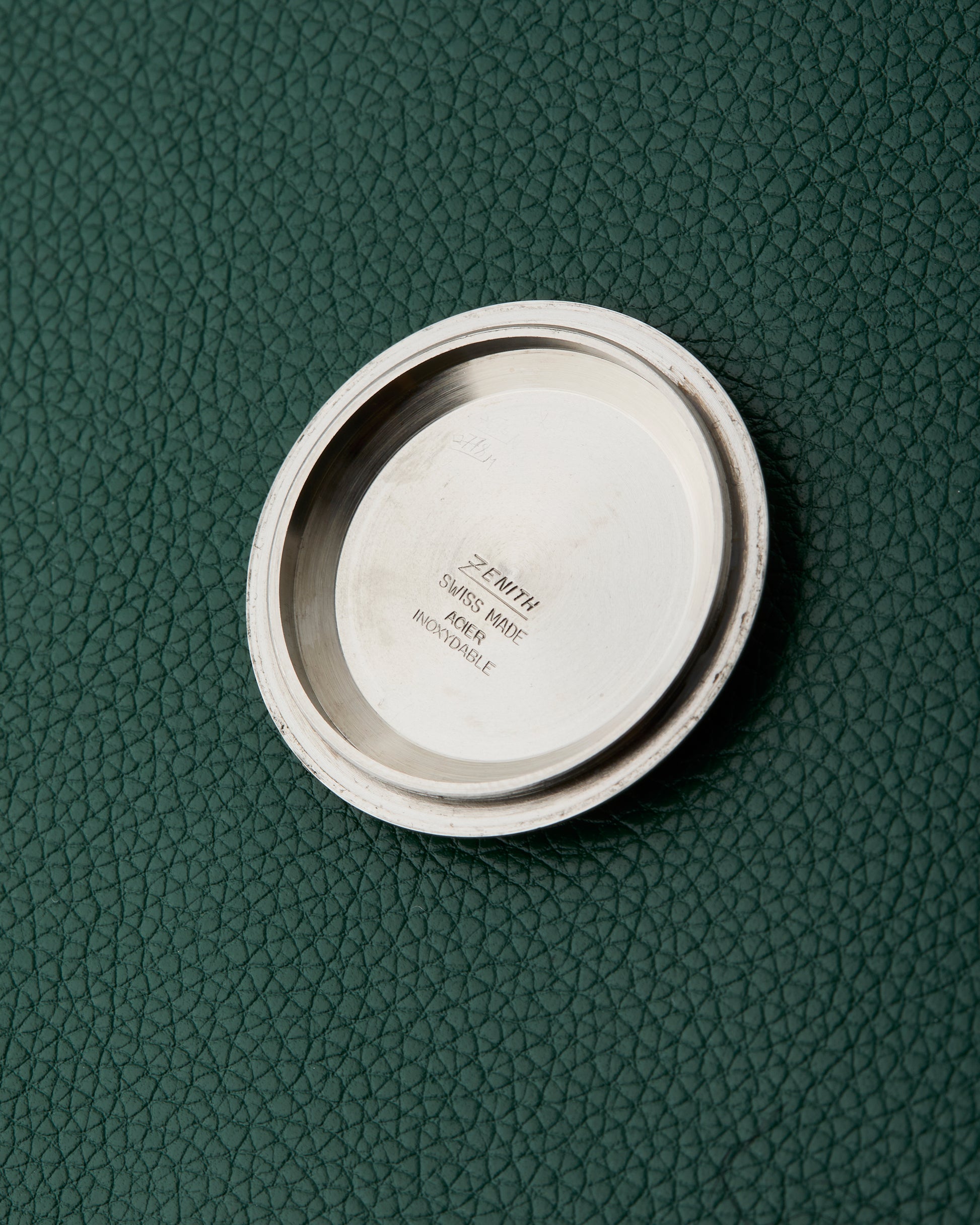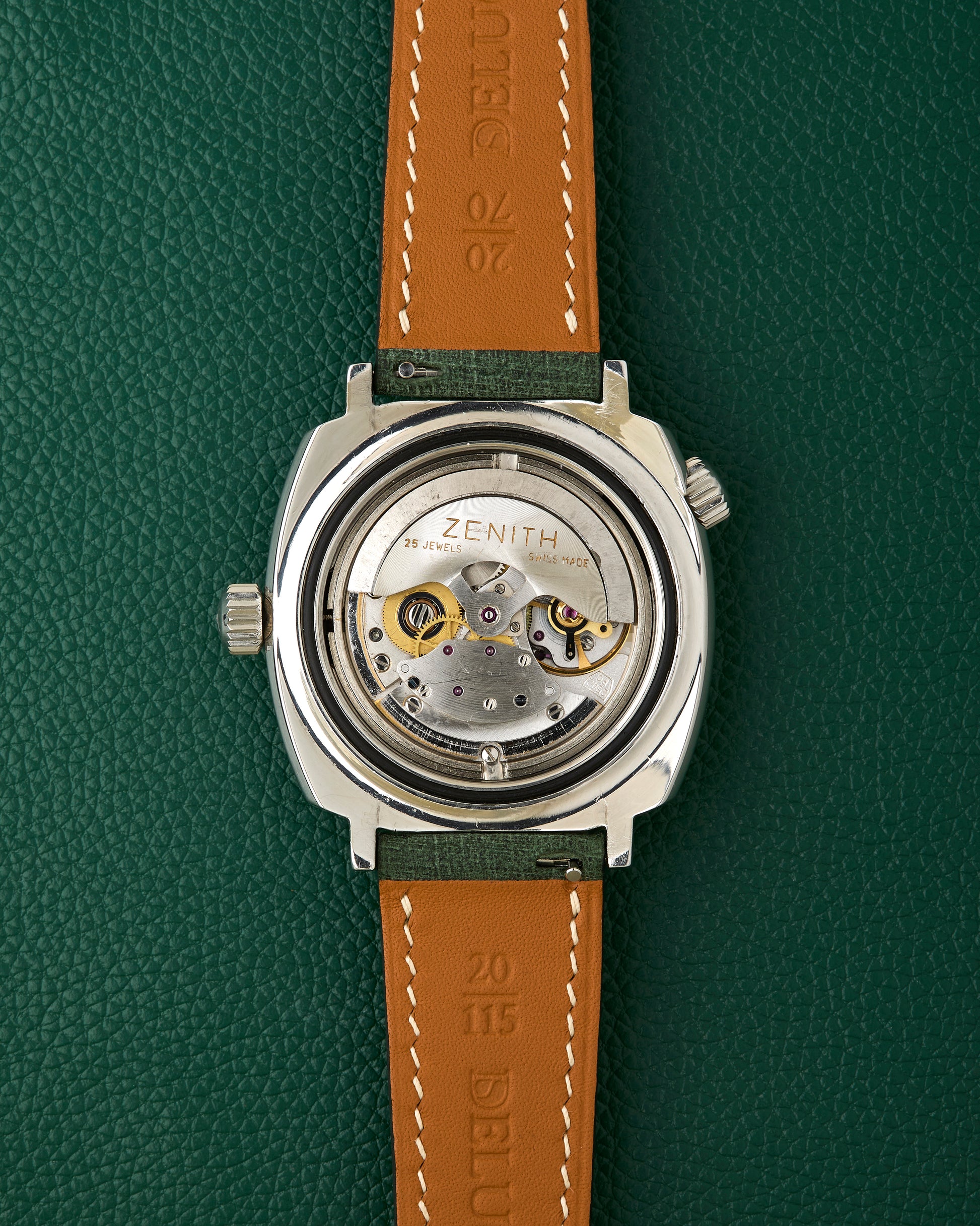 The dial has developed an incredible and unique colourway, the Zenith font is still present and in some lights appears to ghost and blend into the dial.